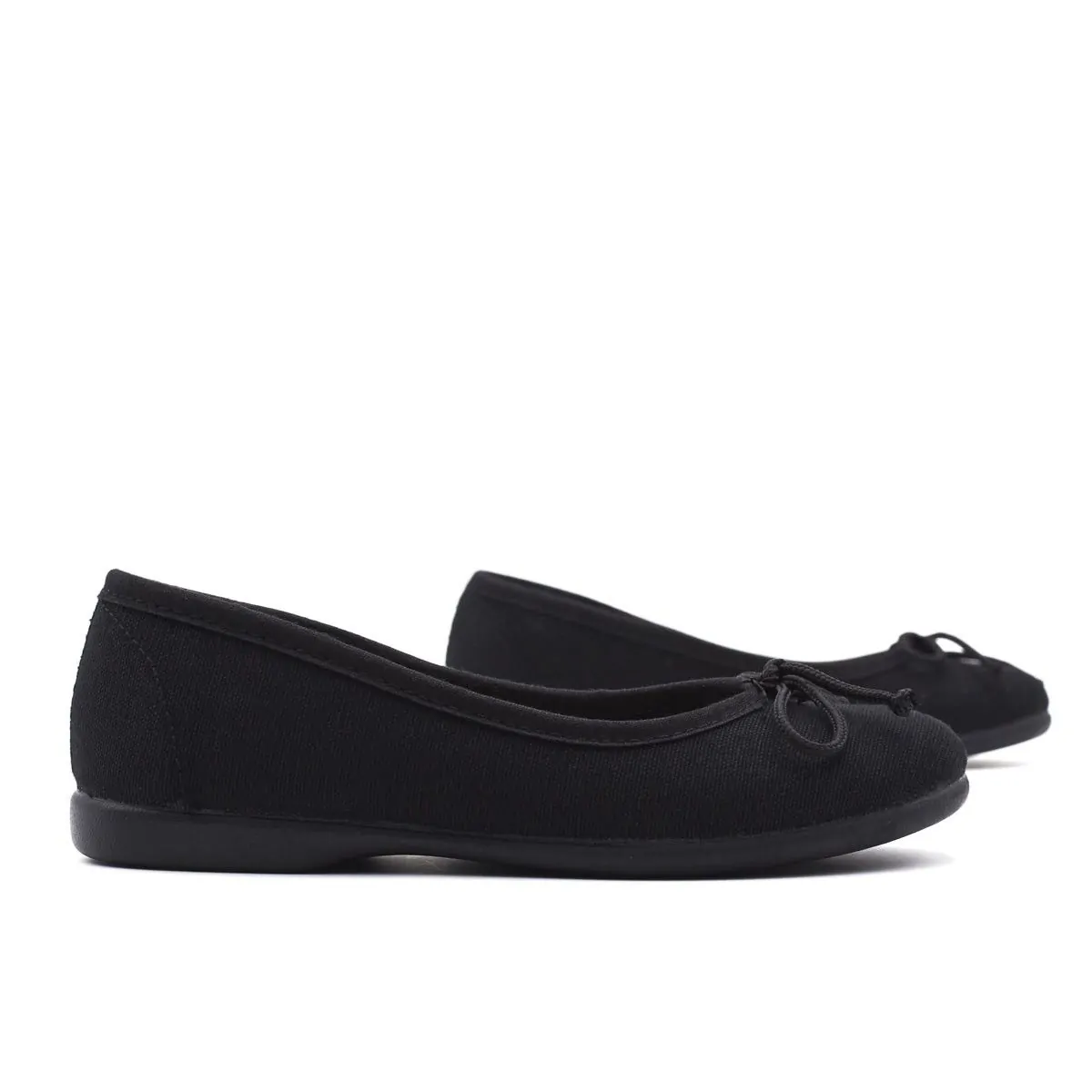 Bailarina o Manoletina Negro de Lona 100% algodón, modelo clásico con cordón para ajustarla perfectamente al pie. Forro y plantilla textil, con suela de goma al tono, muy flexible y antideslizante.