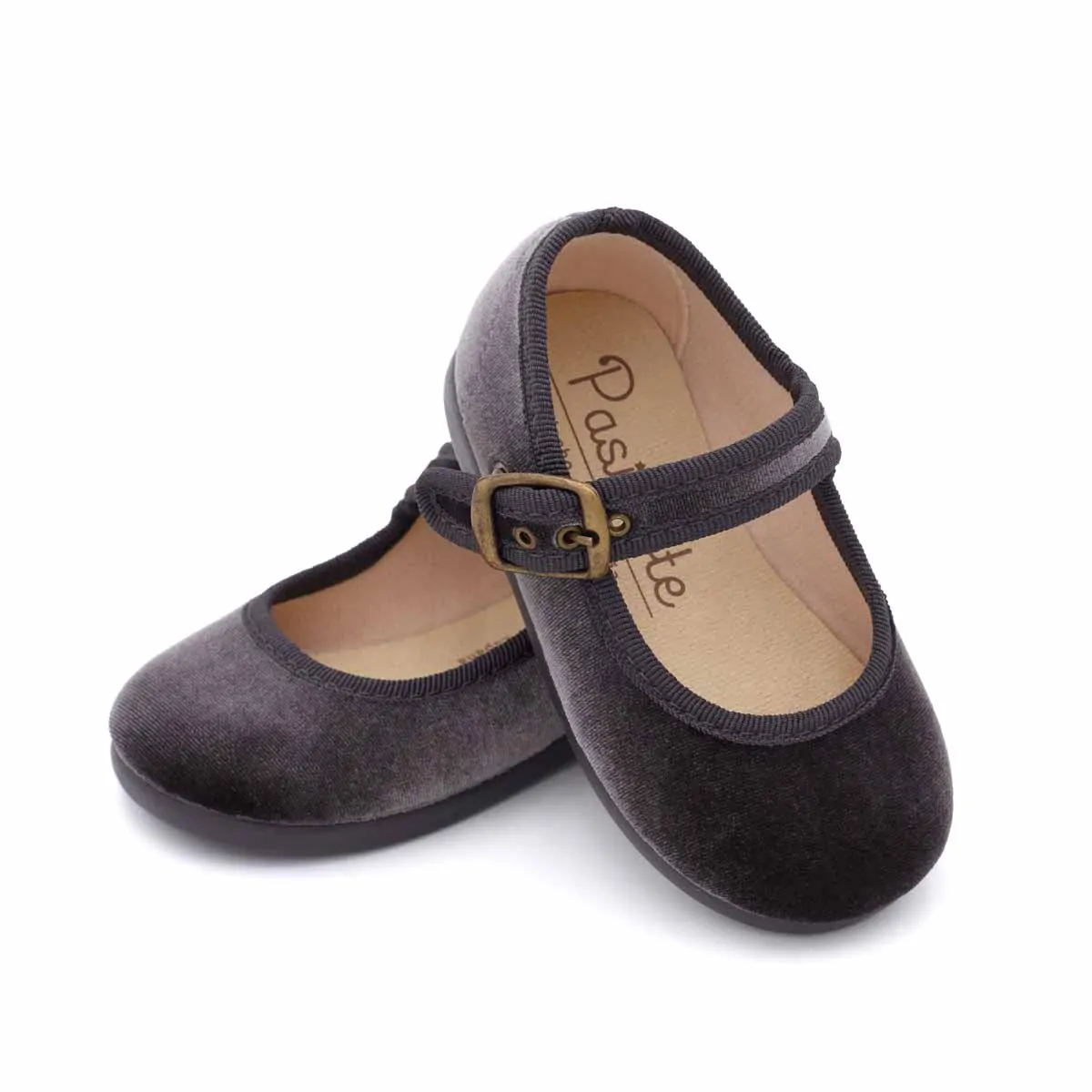 Para conjuntar a niñas más mayores, tienes disponibles las Merceditas de terciopelo Gris.