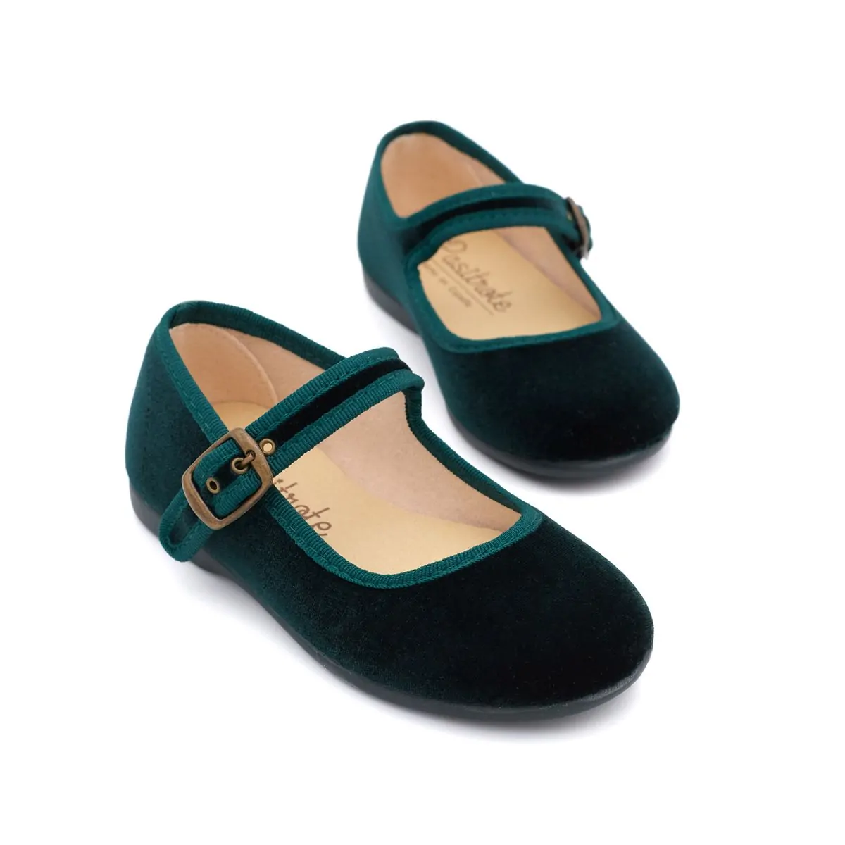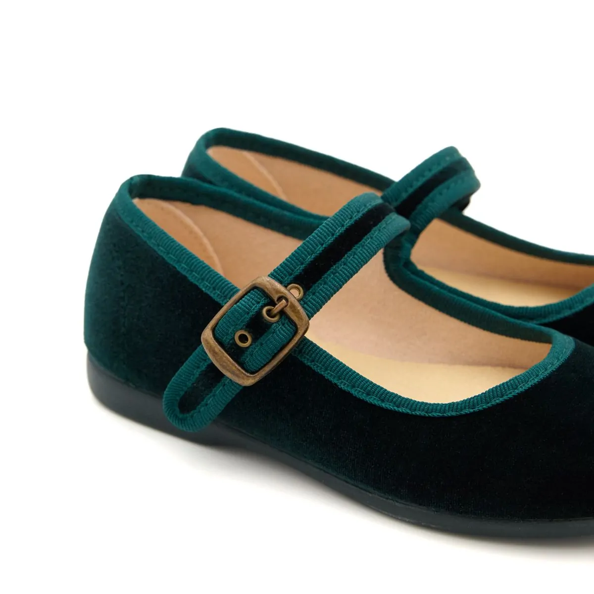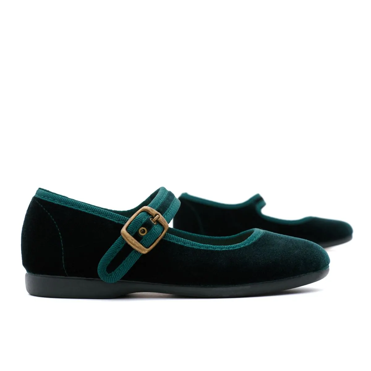 Nuevas Merceditas de Terciopelo Verde para niñas, perfectas para complementar los vestidos de niña en cortejos de arras para bodas de invierno.